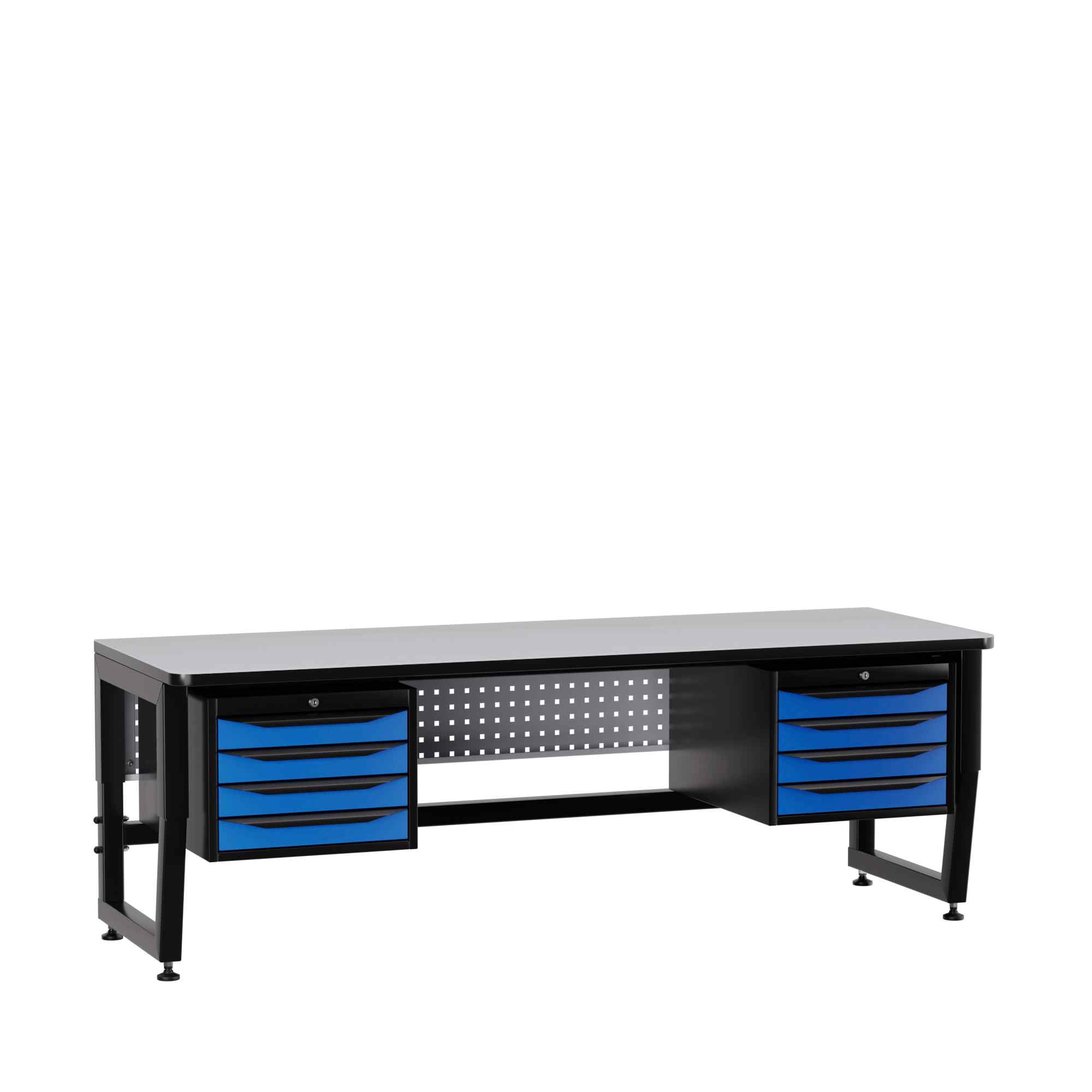 Несущая конструкция стола – это промышленный ESD каркас. Сочетание опорных, несущих и усиливающих элементов из металла, обеспечивают высокую надежность конструкции при интенсивной промышленной эксплуатации с распределенными нагрузками на рабочее место до 500 кг.  Регулируемые опоры с возможностью плавной регулировки по высоте позволяют установить удобную высоту рабочей поверхности от 700мм до 850мм. Специальное ESD полимерное покрытие элементов каркаса с  сопротивлением 1 МОм обеспечивают антистатические свойства изделия