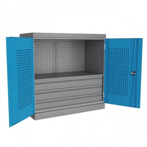 Металлический инструментальный шкаф PRF (антресоль) предназначен для хранения оснастки, приспособлений и инструмента на рабочих местах в мастерских, цехах и других производственных зонах. Шкаф изготовлен из листовой стали и обеспечивает надежное запирание дверей ригельной системой. Шкаф данной модели может комплектоваться либо полками PRF(1) и ящиками PRF(1) – по всей ширине шкафа, при этом максимальное количество полок и ящиков по высоте - 12 штук. При установке перегородки, шкаф делится на две части и может комплектоваться полками PRF(2) и ящиками PRF(2), при этом максимальное количество полок и ящиков по высоте - 12 штук в два ряда.