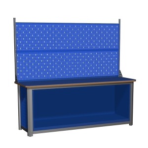 | 870х2000х700 мм. со столешницей (фанера 24 мм. + 6 мм. сталь). Сборно-разборный каркас. Включает в себя: четыре полки-стенки большие. |