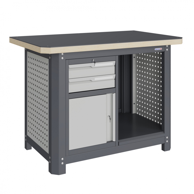 Модуль верстака выполнен сварными. Ящики в модулях устанавливаются на шариковых телескопических направляющих полного выдвижения.