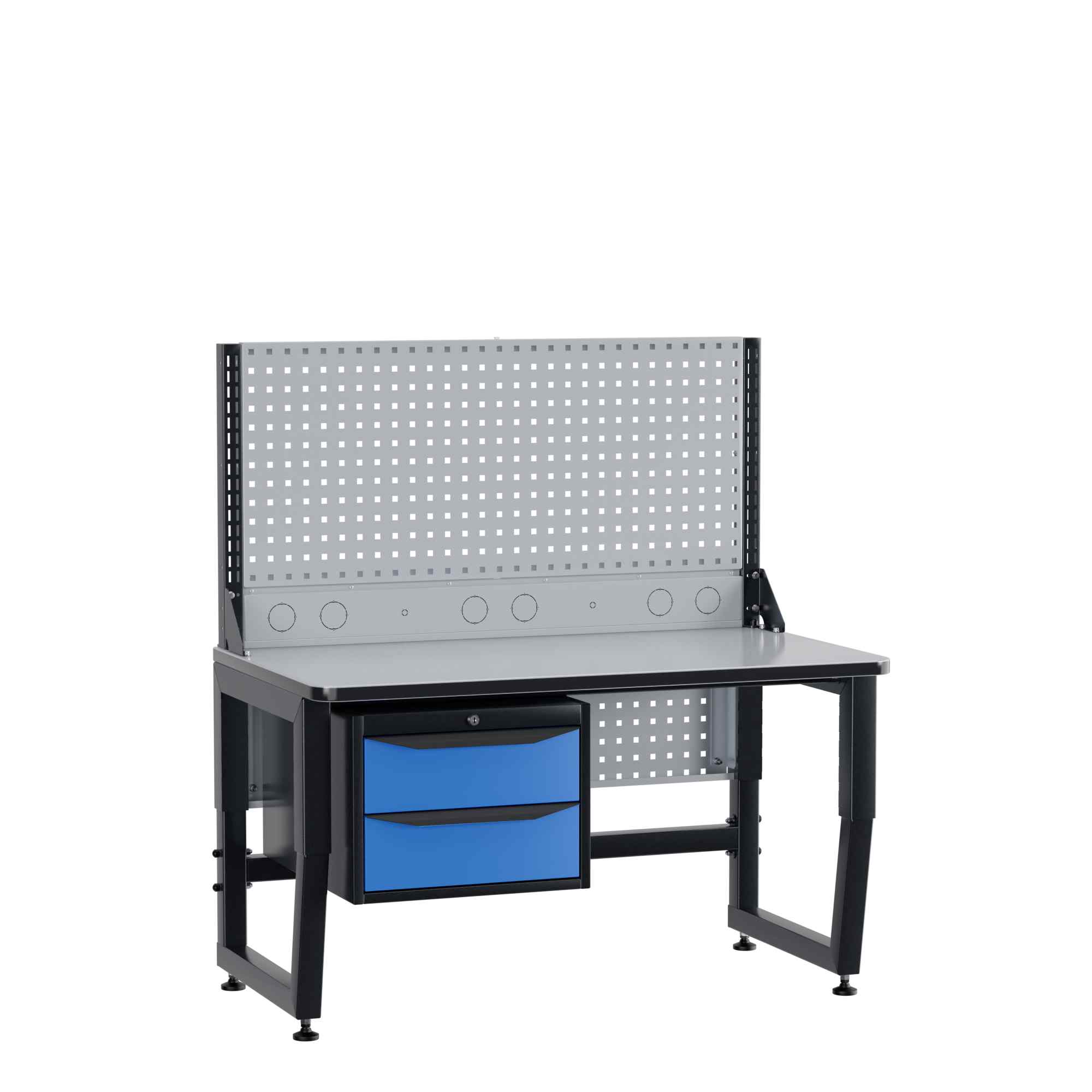 Несущая конструкция стола – это промышленный ESD каркас. Сочетание опорных, несущих и усиливающих элементов из металла, обеспечивают высокую надежность конструкции при интенсивной промышленной эксплуатации с распределенными нагрузками на рабочее место до 500 кг.  Регулируемые опоры с возможностью плавной регулировки по высоте позволяют установить удобную высоту рабочей поверхности от 700мм до 850мм. Специальное ESD полимерное покрытие элементов каркаса с  сопротивлением 1 МОм обеспечивают антистатические свойства изделия