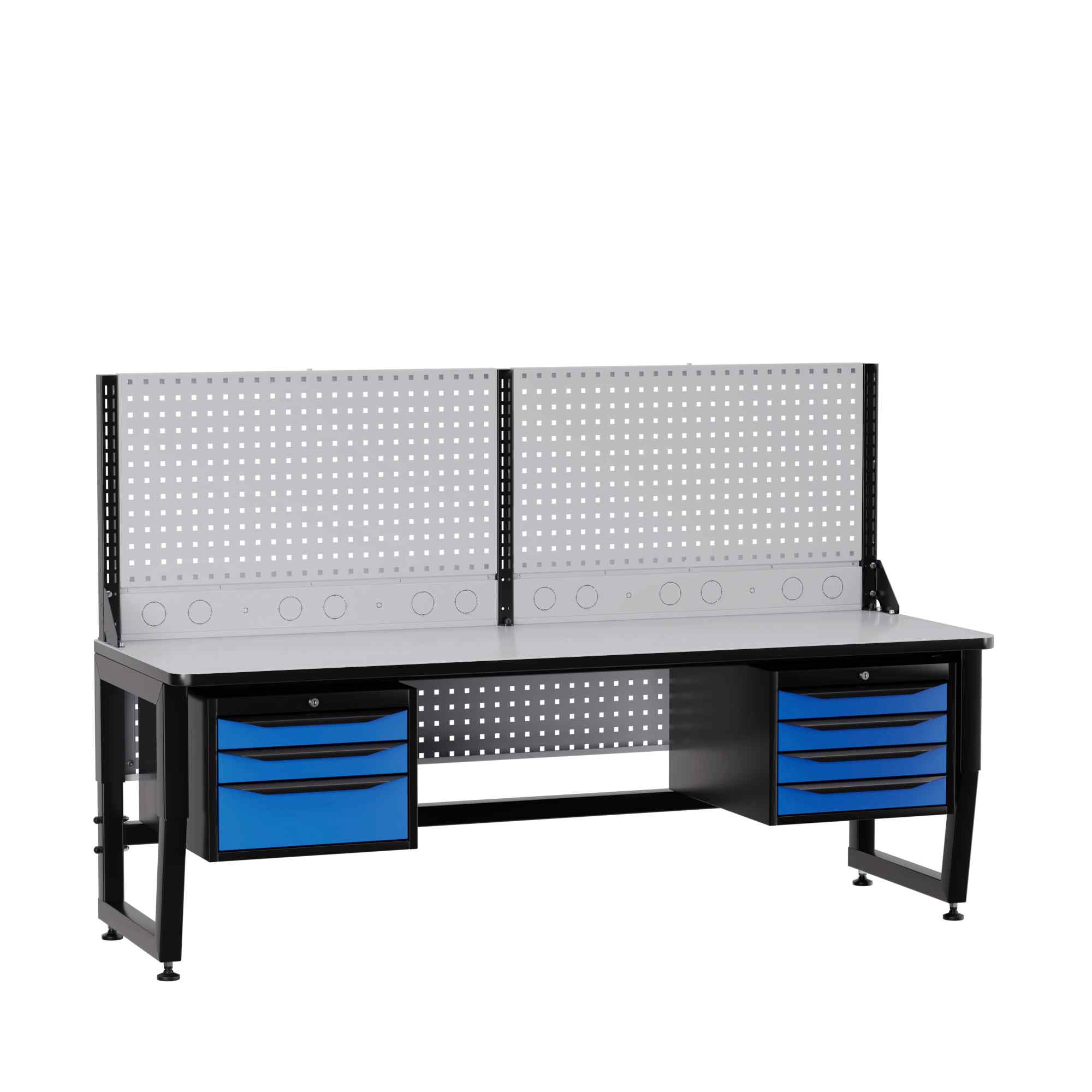 Несущая конструкция стола – это промышленный ESD каркас. Сочетание опорных, несущих и усиливающих элементов из металла, обеспечивают высокую надежность конструкции при интенсивной промышленной эксплуатации с распределенными нагрузками на рабочее место до 500 кг.  Регулируемые опоры с возможностью плавной регулировки по высоте позволяют установить удобную высоту рабочей поверхности от 700мм до 850мм. Специальное ESD полимерное покрытие элементов каркаса с  сопротивлением 1 МОм обеспечивают антистатические свойства изделия