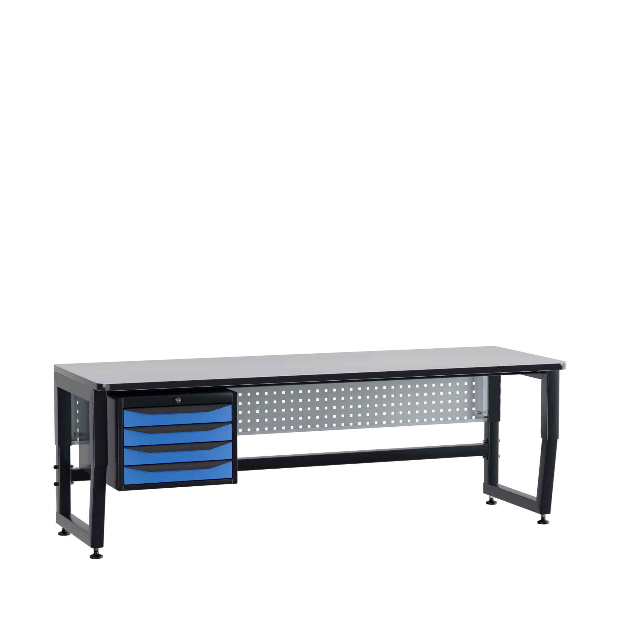 Несущая конструкция стола – это промышленный ESD каркас. Сочетание опорных, несущих и усиливающих элементов из металла, обеспечивают высокую надежность конструкции при интенсивной промышленной эксплуатации с распределенными нагрузками на рабочее место до 500 кг.  Регулируемые опоры с возможностью плавной регулировки по высоте позволяют установить удобную высоту рабочей поверхности от 700мм до 850мм. Специальное ESD полимерное покрытие элементов каркаса с  сопротивлением 1 МОм обеспечивают антистатические свойства изделия