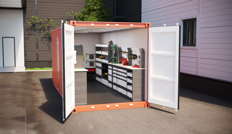 Мобильную мастерскую можно сконфигурировать под любые задачи, организовав в ней эргономичную систему хранения материалов и инструментов, исходя из индивидуальных потребностей и видов производимых работ.