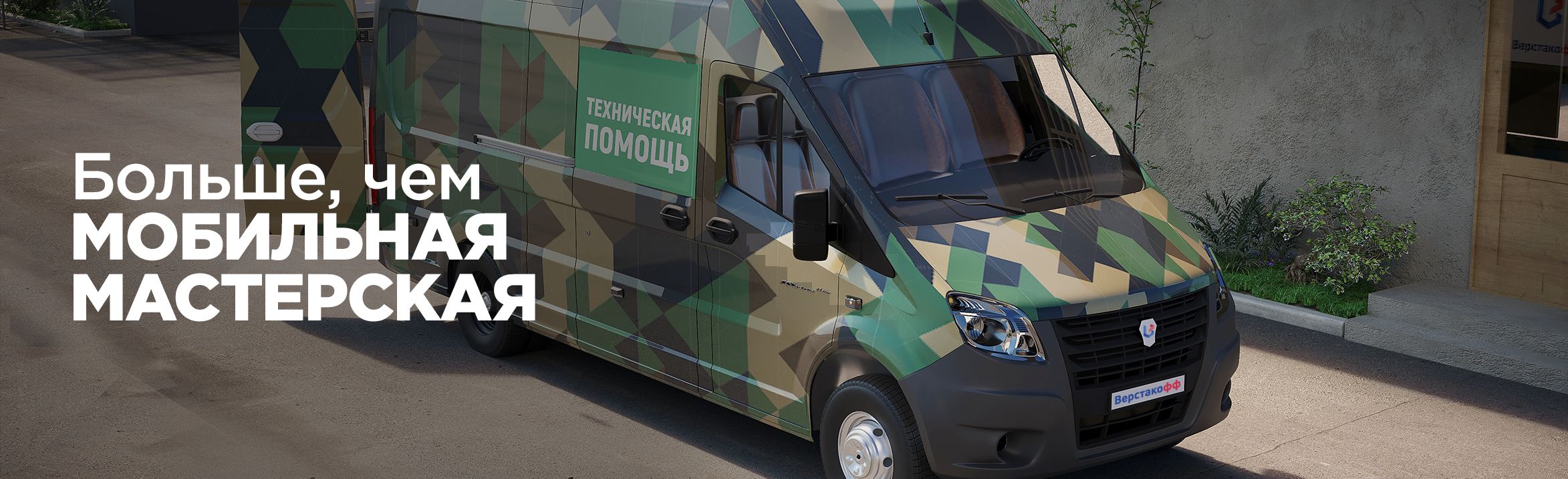 Мобильная мастерская оснащена всем необходимым для проведения оперативного ремонта и может быть укомплектована специализированным оборудованием и инструментом в соответствии с видами обслуживаемой техники.