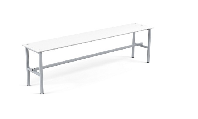 В скамейках качестве сиденья используются металлические овальный трубы. Скамейка имеет сварной каркас. Опоры изготавливаются их профильной трубы 25х25 мм, сиденье из овальной 30х15 мм. Скамейка окрашена порошковой полимерной краской светло-серого цвета (RAL 7035), текстура - шагрень. На концах труб - пластиковые заглушки.