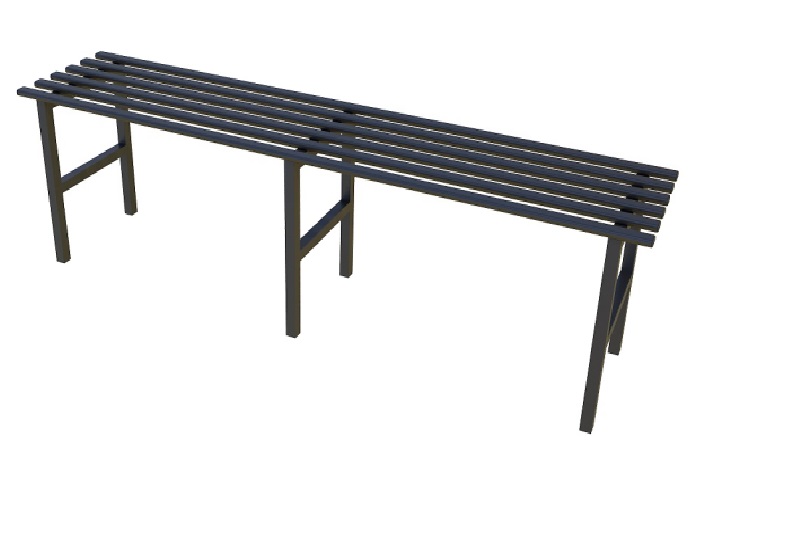 В скамейках  качестве сиденья используются металлические овальный трубы. Скамейка имеет сварной каркас. Опоры изготавливаются их профильной трубы 25х25 мм, сиденье из овальной 30х15 мм. Скамейка окрашена порошковой полимерной краской светло-серого цвета (RAL 7035), текстура - шагрень. На концах труб - пластиковые заглушки.