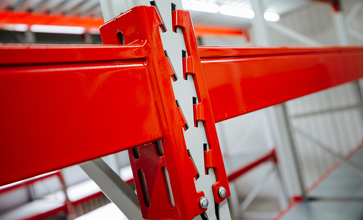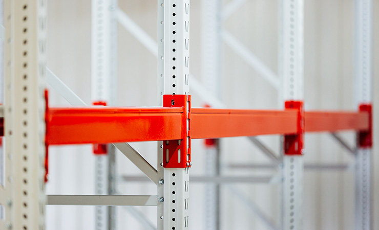 Конструктивно металлические стеллажи состоят из вертикальных рам (стоек) и горизонтальных балок, которые соединяются болтами. Они производятся различной длины и сечения, которые позволяют собирать паллетные стеллажи разной грузоподъемности и конфигурации.