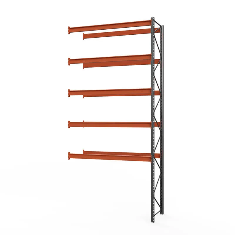 Профили стоек имеют большое количество гибов, которые придают жесткость конструкции и повышают устойчивость при ударах грузом или техникой; Z-образная балка прокрашивается со всех сторон и полностью защищена от коррозии, а цельнокатанный профиль без дополнительных точечных сварных швов подвергается меньшему напряжению;