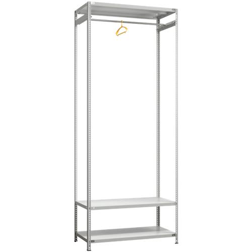 • Состоит из трёх полок и одного яруса-вешала с двумя штангами для одежды на плечиках.