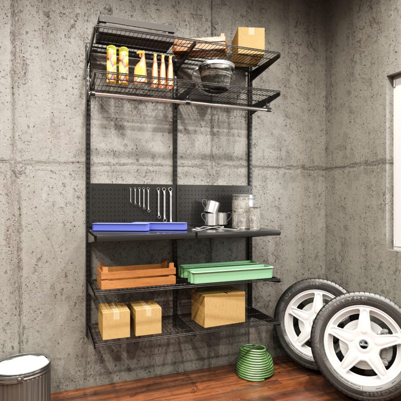 Сетчатые и металлические полки выдерживающие нагрузку до 50 кг, позволят вам размещать на них почти неограниченное количество вещей. Высококачественное порошково-полимерное покрытие устойчиво к износу, защищает систему от коррозии и сохраняет отличный внешний вид на протяжении всего срока службы.