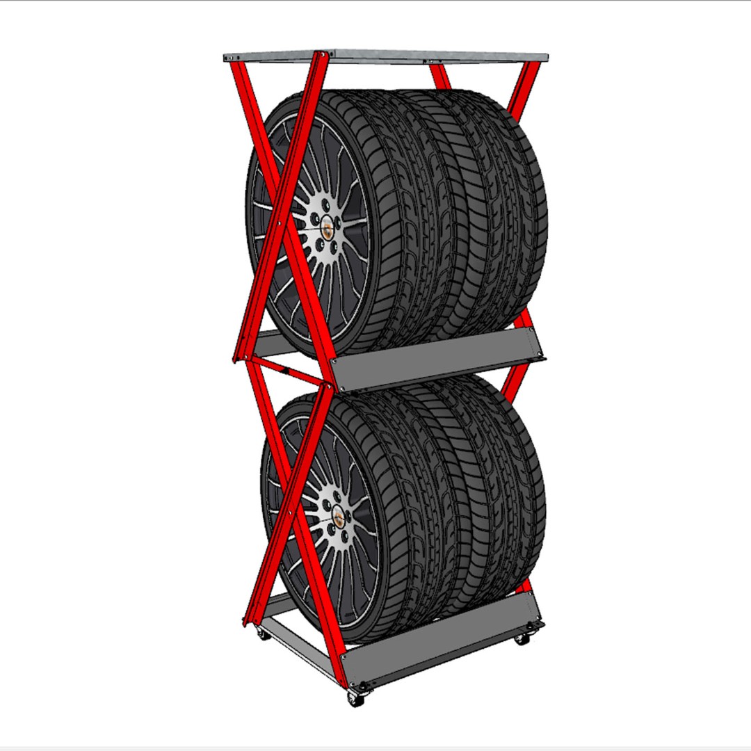 Колёсный стеллаж 2х2 - 2 этажа по 2 колеса. Высота с полкой 187 см.