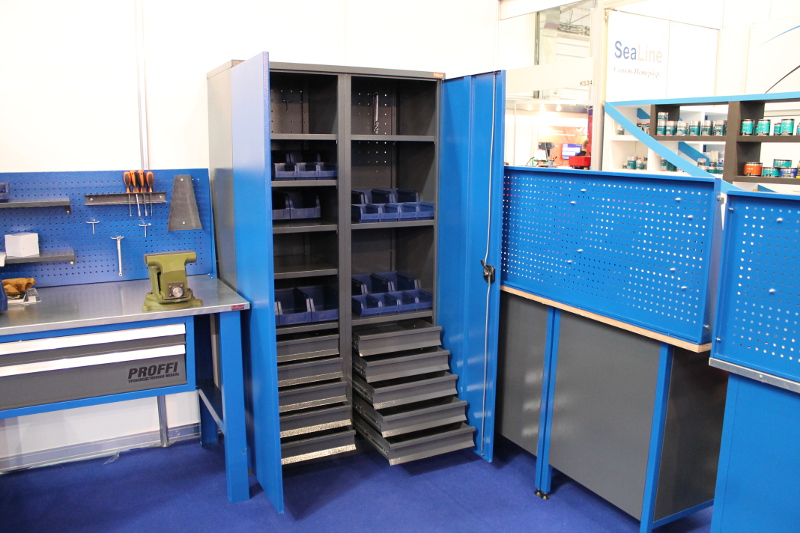 Подобрать оснащение можно таким образом, чтобы у каждого сотрудника мастерской был свой небольшой индивидуальный шкаф, за который он несет полную личную ответственность. Или можно выставить несколько больших общих шкафов, в которых инструмент будет распределяться по типу. Это очень удобно, так как хранилище позволяет существенно ускорить поиск необходимого для работы оборудования и обеспечить его полную сохранность.