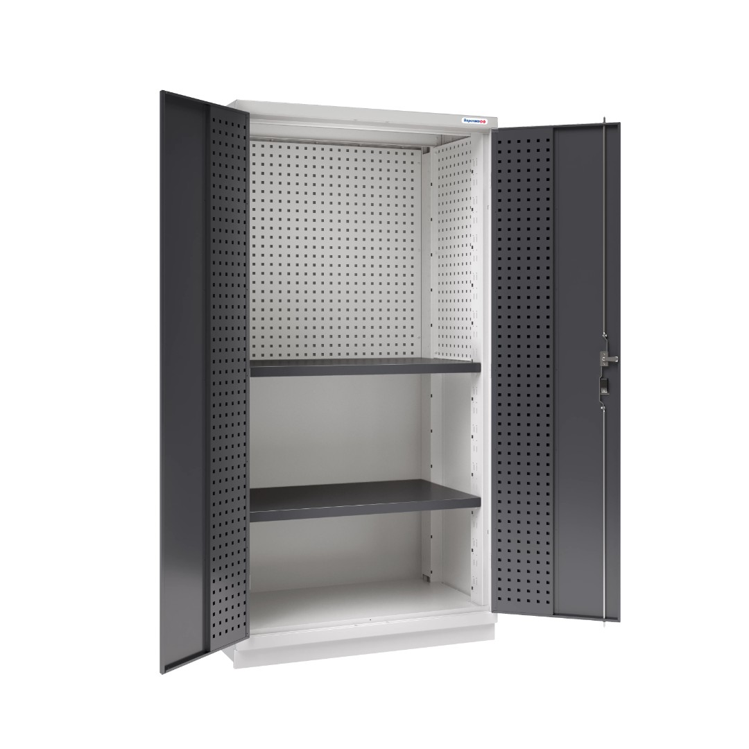 Шкаф инструментальный Fabrik тяжёлой серии представляет собой сборно-разборную конструкцию, предназначен для хранения оснастки, приспособлений и инструмента в мастерских, цехах и других производственных зонах. Шкаф изготовлен из листовой стали и обеспечивает надежное запирание дверей ригельной системой.