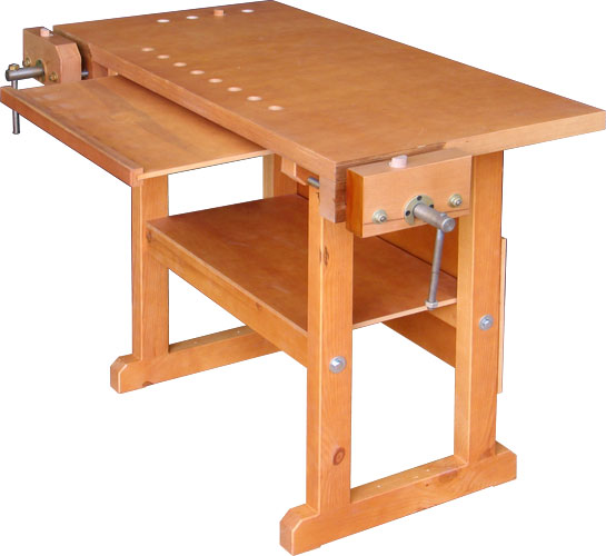 На столешнице расположены два ряда отверстий (25 мм) для передвижных упоров: 8 отверстий вдоль передней части столешницы и 4 отверстия вдоль правого торца столешницы. Конструкция отверстий позволяет использовать тиски для фиксации деревянных деталей и работать вдвоём.