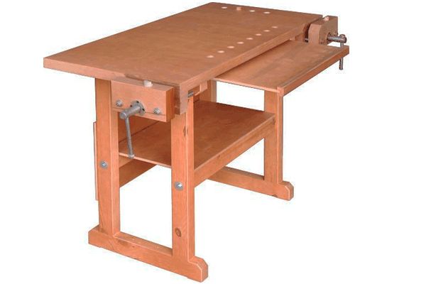 Столешница верстака «Маленький мастер» выполнена из ударопрочной, многослойной березовой фанеры толщиной 35-40 мм, позволяющей закрепить разные приспособления и слесарные тиски.