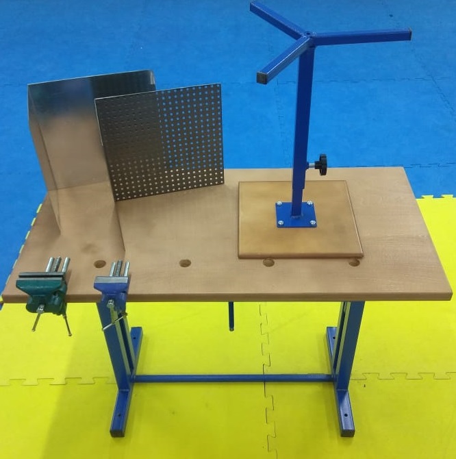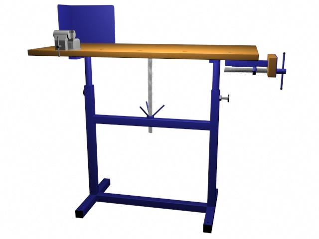 В комплекте: - табурет (рег. 390-600 мм); - тиски слесарные на струбцине (60 мм.); - столярный прижим (струбцина 150 мм); - угловой защитный экран; |