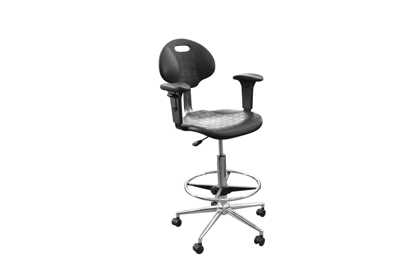 Кресло лабораторное с полиуретановыми сиденьем, спинкой и подлокотниками на газ лифте, модель КР12-В.