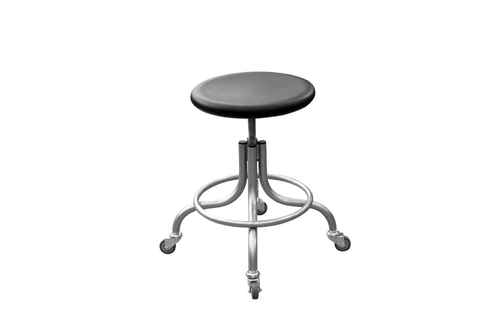 Табурет винтовой, сиденье ПОЛИУРЕТАН. Надёжная винтовая опора, с кольцом опорой для ног, на колёсиках.