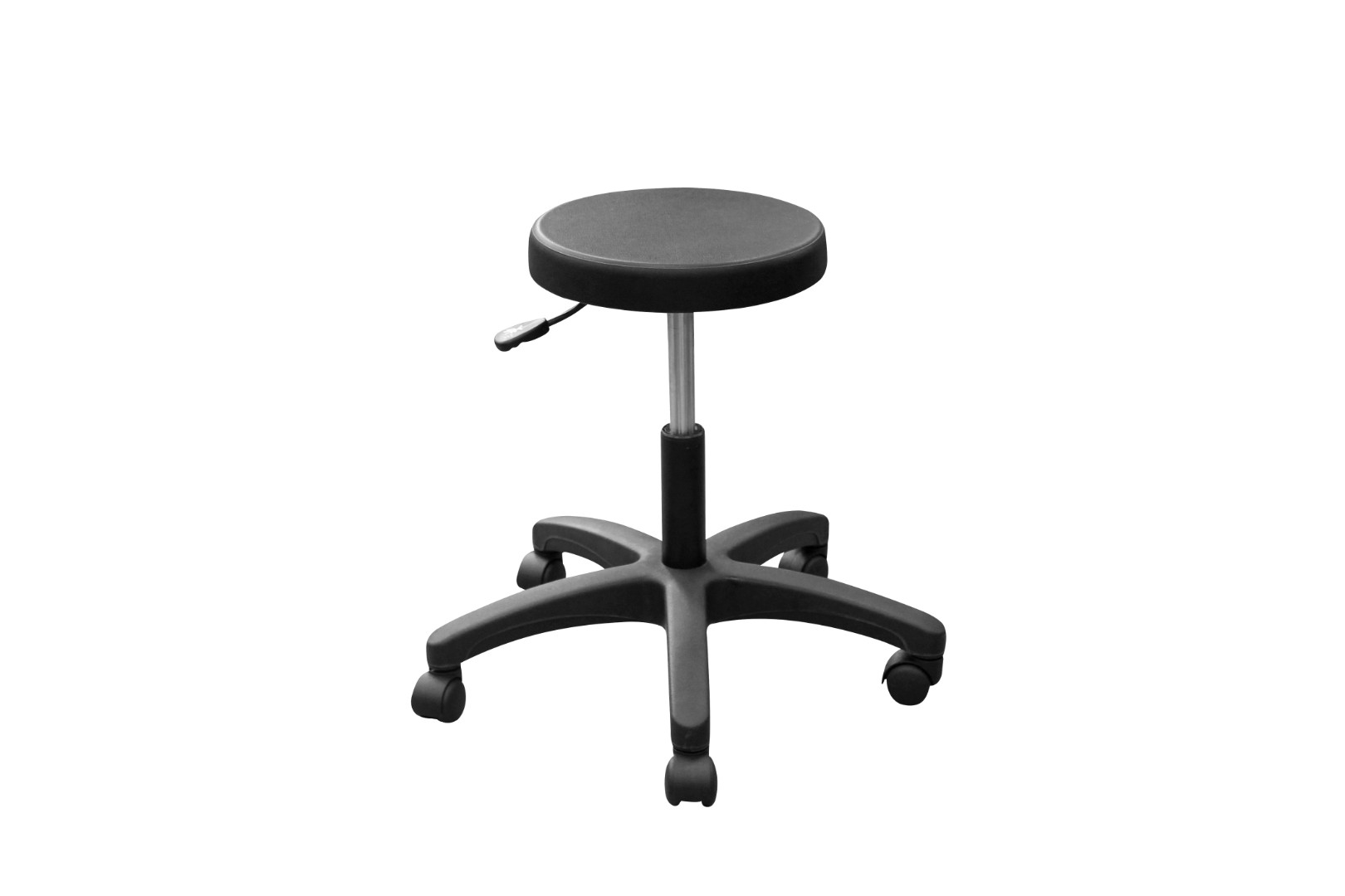 В базовом варианте табурет поставляется на пластиковых колесных опорах, без опорного кольца для ног.