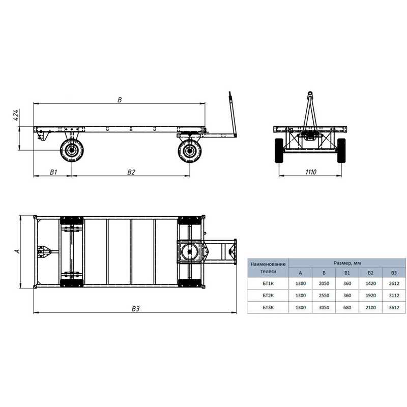 Большегрузная тележка БТ-К (г/п 3 т, 2000x1250 мм, без настила, без бортов)