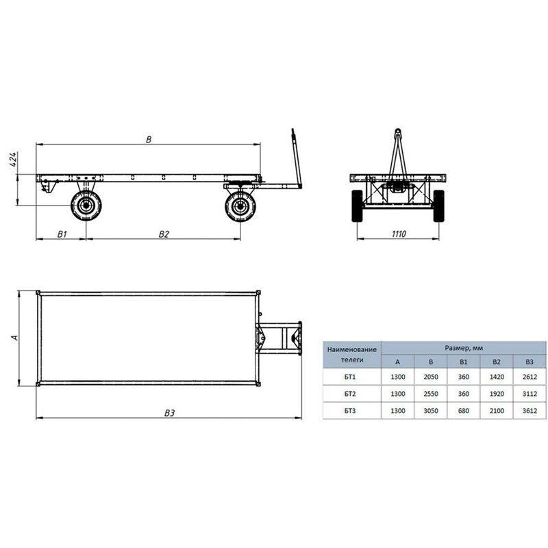 Большегрузная тележка БТ-Н (г/п 3 т, 2500x1250 мм, фанерный настил, без бортов)