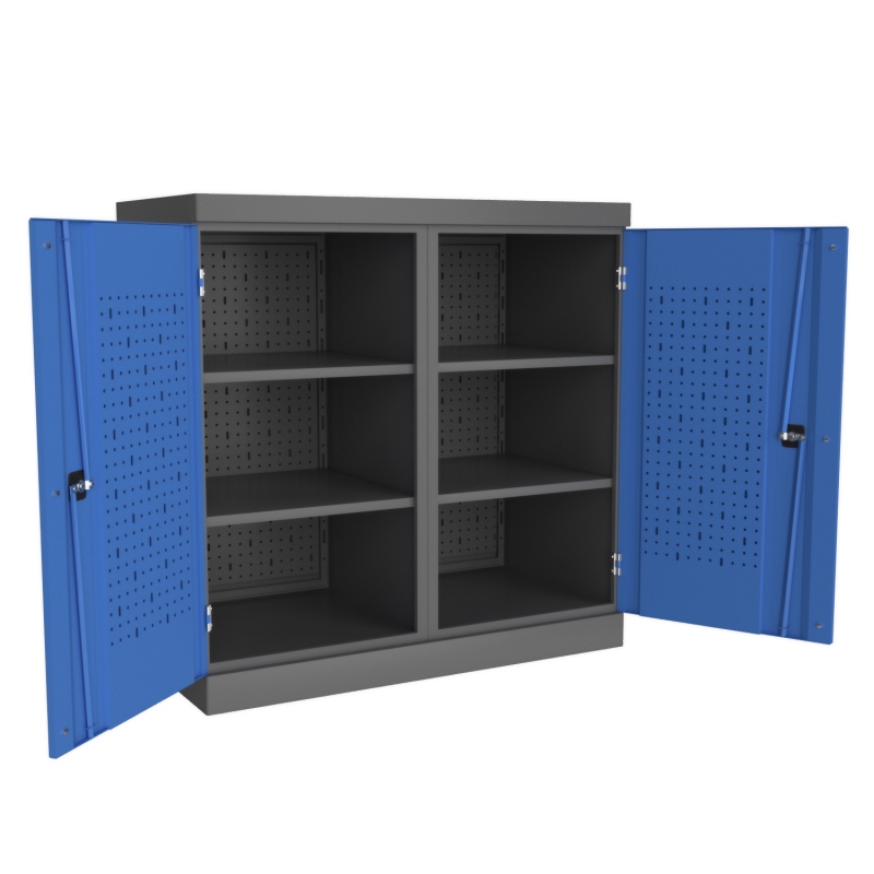 Металлический инструментальный шкаф PROFFI (антресоль) предназначен для хранения оснастки, приспособлений и инструмента на рабочих местах в мастерских, цехах и других производственных зонах.