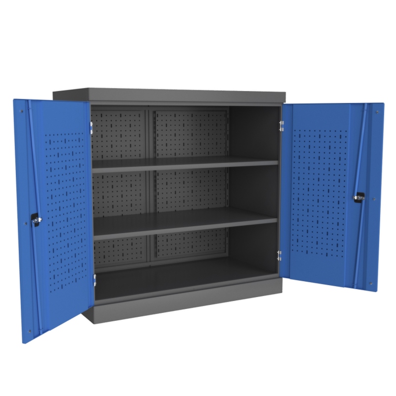 Металлический инструментальный шкаф PROFFI (антресоль) предназначен для хранения оснастки, приспособлений и инструмента на рабочих местах в мастерских, цехах и других производственных зонах.