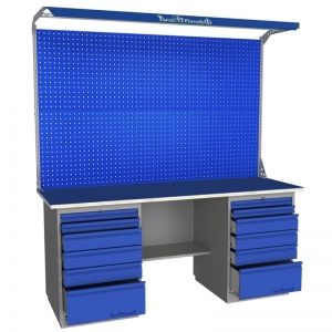Верстак серии GRAND - специальная тяжелая серия верстаков, спроектированная на базе верстаков PROFFI. Предназначена для тяжелых работ в специализированных цехах, образовательных учреждениях и промышленных предприятиях. Сверху экрана установлена подсветка на магнитных креплениях для легкого монтажа.
