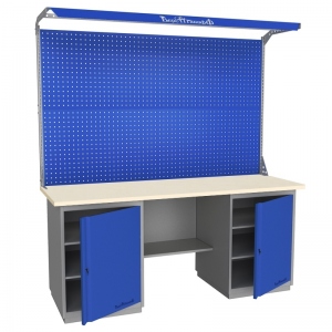 Верстак серии GRAND - специальная тяжелая серия верстаков, спроектированная на базе верстаков PROFFI. Предназначена для тяжелых работ в специализированных цехах, образовательных учреждениях и промышленных предприятиях. Сверху экрана установлена подсветка на магнитных креплениях для легкого монтажа.