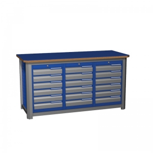 870х1500х700 мм. со столешницей (фанера 24 мм. + 6 мм. сталь). Сборно-разборный каркас. Включает в себя: три модуля с 6-ю выдвижными ящиками.