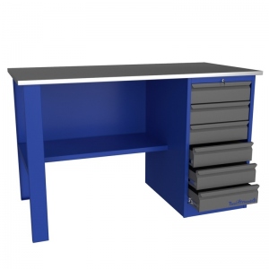 столешница (фанера 24 мм +оцинк. мет. 1мм), опора, полка\стенка и тумба с 6 ящиками.