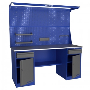 Cтолешница 1800 мм (фанера 24 мм + оцинкованный металл 1 мм), 2 тумбы с ящиком и дверью, полка-стенка. Вес - 104/116/129 кг.