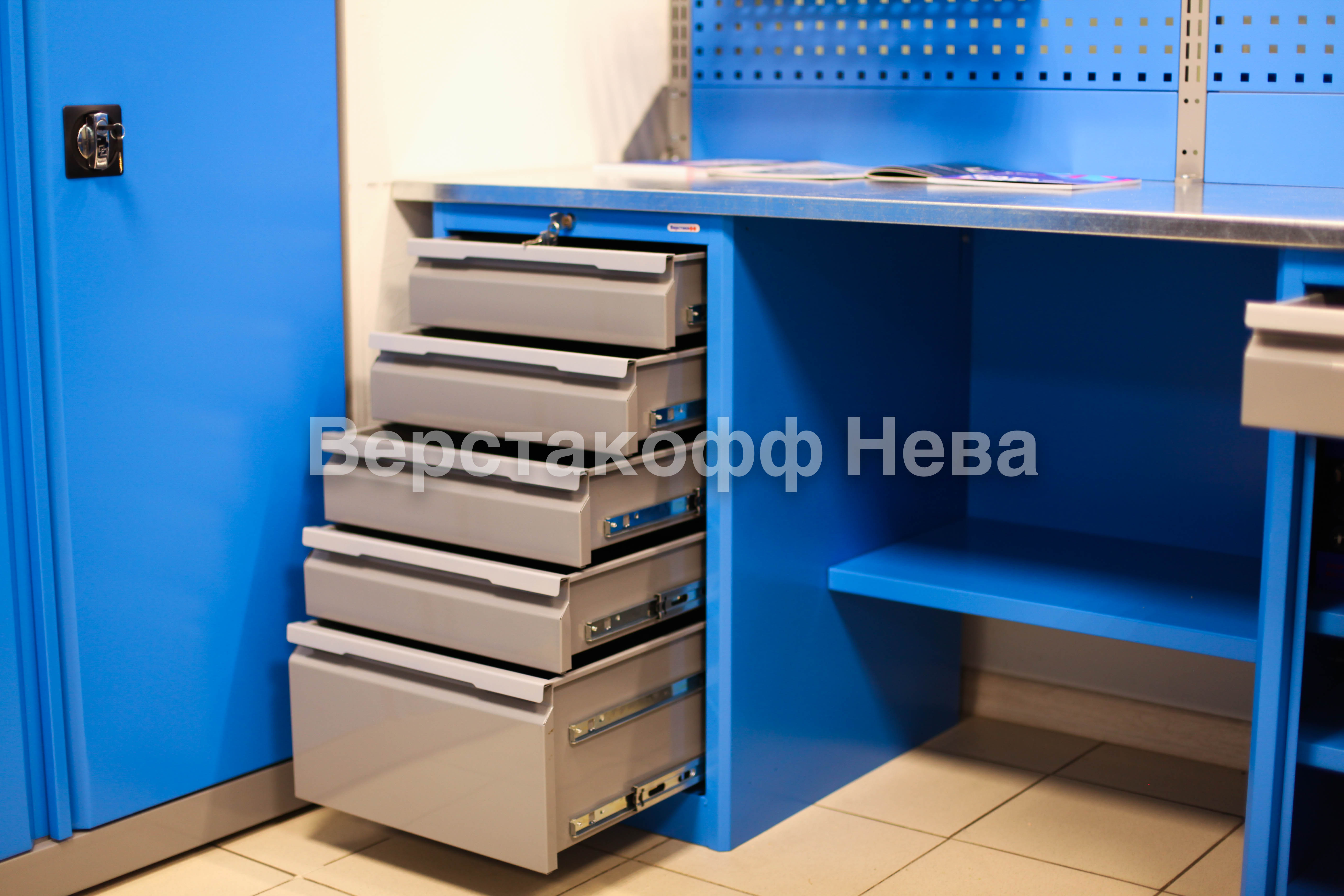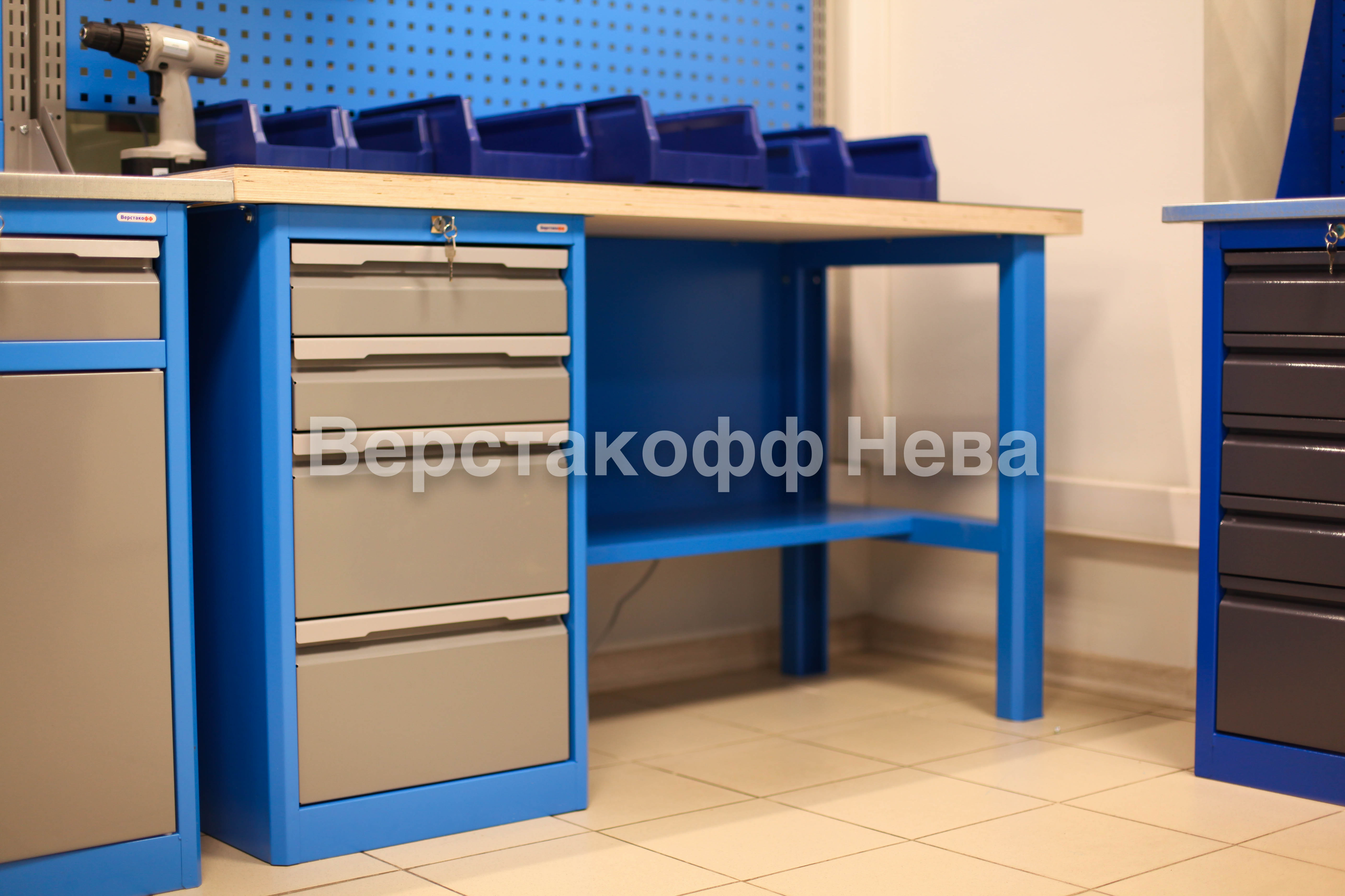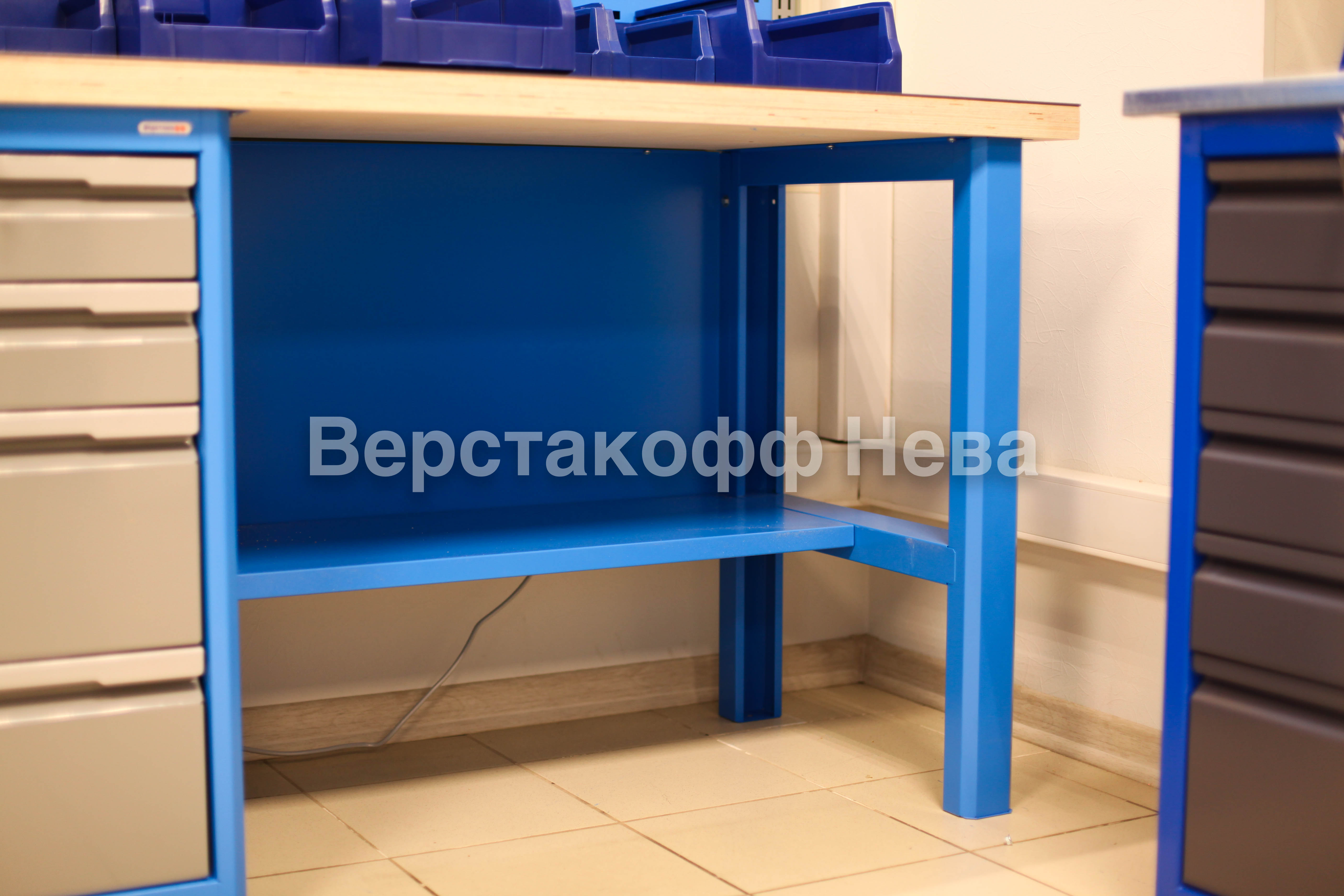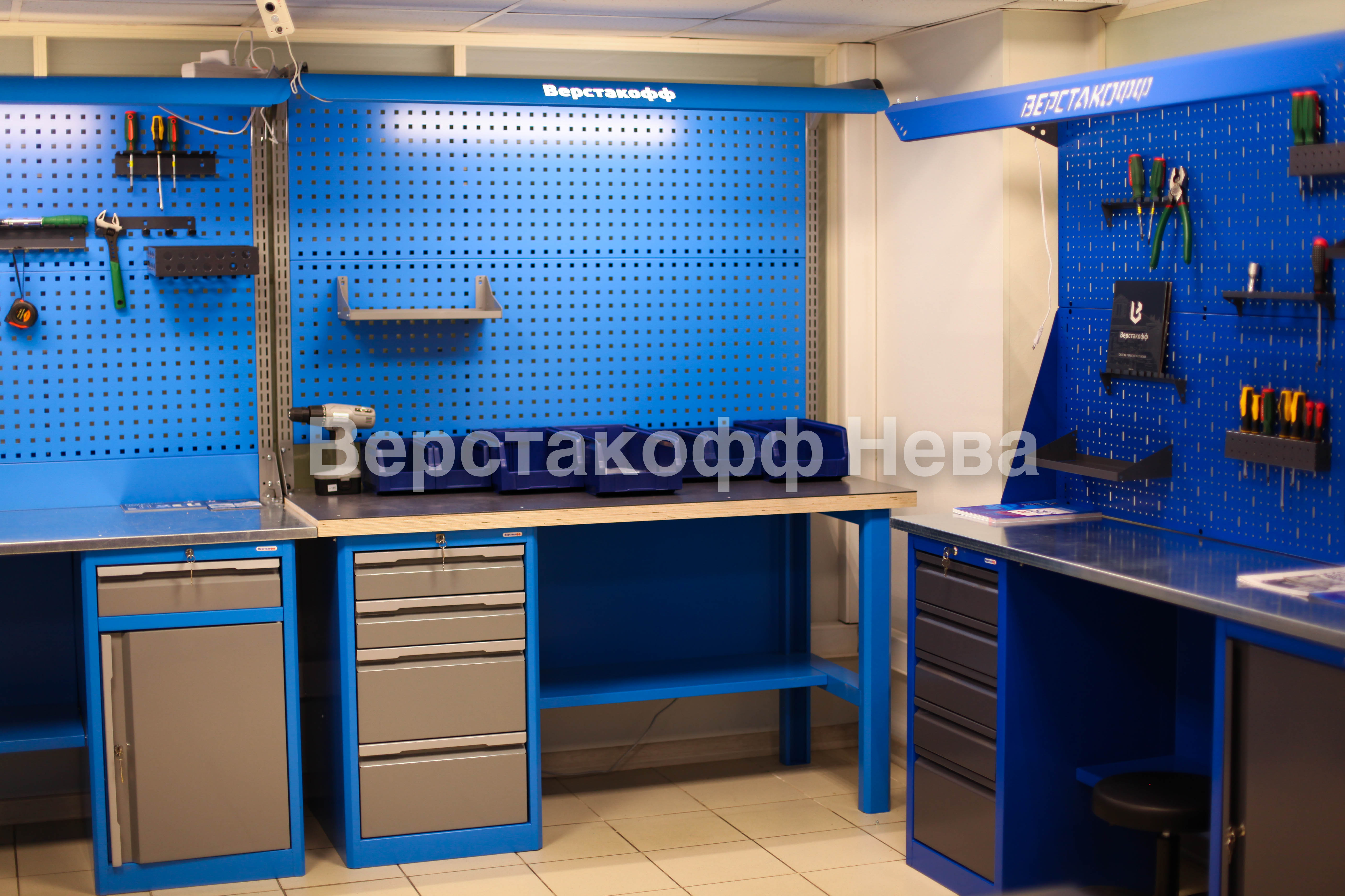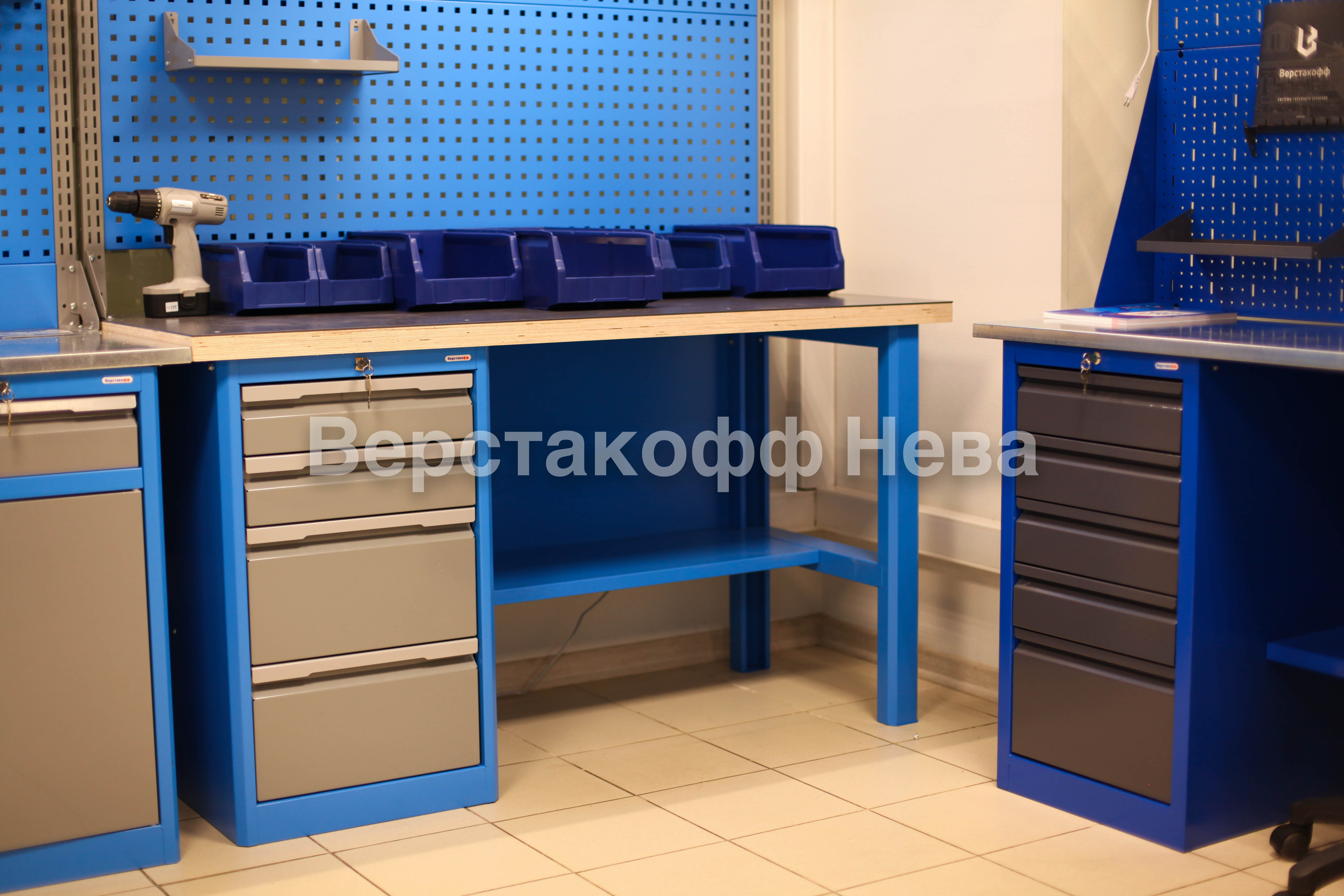 Состоит из PROFFI столешницы (фанера), PROFFI Столешница(сталь 6мм)nbsp;PROFFI опоры, с большим экраном и подсветкой,PROFFI полкистенки 1, PROFFI Тумбы с дверцей. Верстаки серии «PROFFI» предназначены для установки в производственных помещениях и собираются в различной комплектации из отдельных элементов:nbsp; PROFFI опора - синего цвета;nbsp; PROFFI ножка синего цвета; PROFFI столешница 1 Д (2Д, 3Д) из 24 мм фанеры, обработаны защитным лакокрасочным покрытием; PROFFI столешница 1М (2М, 3М) из стального листа 6 мм; возможны варианты установки комбинированных PROFFI столешниц (фанера 24 мм + металл 6 мм) и PROFFI столешниц ( фанера 24 мм + металлическая накладка 2 мм); PROFFI тумба с дверцей - все элементы серого цвета; PROFFI тумба с ящиками, все элементы серого цвета; PROFFI полка/стенка 1 (2), серого цвета;nbsp; ВСС экран 2 (3) синего цвета, с комплектом навесок серого цвета (полка - 2 шт., держатель отверток - 1 шт., держатель ключей - 1 шт.). В комплектацию ящиков входит пластиковая ручка. Сверху экрана установлена подсветка на магнитных креплениях для легкого монтажа.