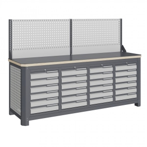 Верстак серии MECHANIC: MCN 2052.S6666-1 состоит из столешницы шириной 1993 мм, рамы верстака, состоящей из опор, перемычек, боковых перфопанелей, четырех малых модулей S6, одинарного экрана с кронштейнами.