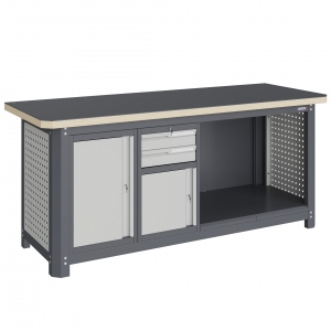 Верстак серии MECHANIC: MCN 2052.S79.11 состоит из столешницы шириной 1993 мм, рамы верстака, состоящей из опор, перемычек, боковых перфопанелей, малых модулей S7, S9 и двух комплектов полка-стенка SW1.
