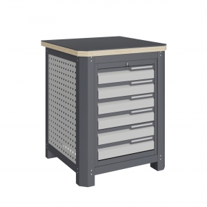 Верстак серии MECHANIC: MCN 0752.S6 состоит из столешницы шириной 693 мм, рамы верстака, состоящей из опор, перемычек, боковых перфопанелей, малого модуля S6.