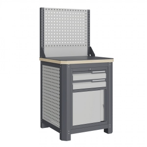 Верстак серии MECHANIC: MCN 0752.S9-1 состоит из столешницы шириной 693 мм, рамы верстака, состоящей из опор, перемычек, боковых перфопанелей, малого модуля S9, одинарного экрана с кронштейнами.