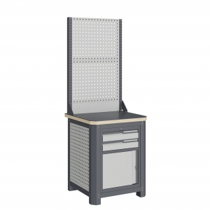 Верстак серии MECHANIC: MCN 0752.S9-2 состоит из столешницы шириной 693 мм, рамы верстака, состоящей из опор, перемычек, боковых перфопанелей, малого модуля S9, двойного экрана с кронштейнами.