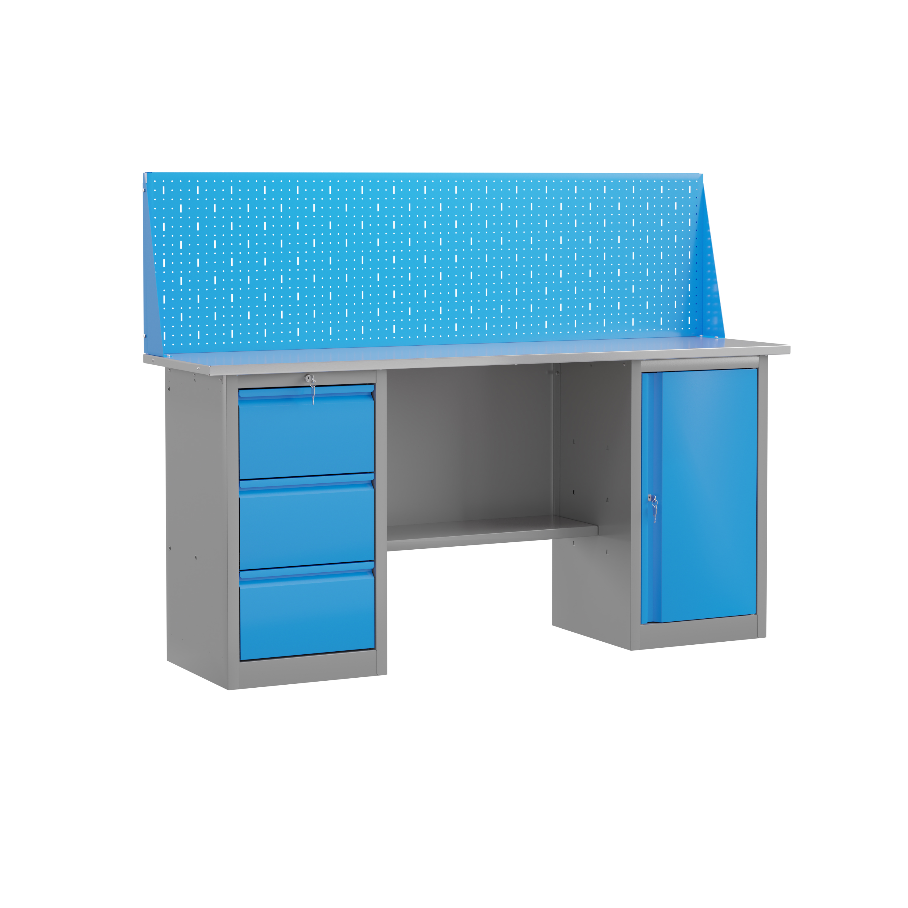 Верстак SLF 181.37-1 – незаменимое оборудование для работы слесарей, плотников, механиков в автосервисах, мастерских, промышленных цехах и т.д. Модель относится к бюджетной серии, поэтому ее максимальная нагрузка – средняя и составляет 300 кг, а стоимость выгодно отличается от аналогичных моделей.