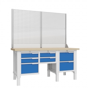 Регулировка рабочего места по высоте осуществляется в диапазоне от 700 до 950мм с шагом 25мм. Предусмотрена возможность тонкой регулировки усиленным резьбовым подпятником. Нагрузка на ящики верстака - до 40 кг, на полки - до 60кг. Общая распределенная нагрузка на рабочую поверхность 1500кг. Имеет возможность стыковки в единую рабочую поверхность с верстаками серии Constructor