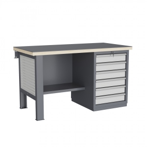 Тумбы и опоры верстаков выполнены из профилированной холоднокатаной стали и имеют сварную конструкцию. Возможна установка любых сочетаний тумб с различным количеством выдвижных ящиков, а также с дверцей и полками. Между тумбами и опорами возможна установка полки-стенки. На каждой ручке ящика и двери закреплен специальный алюминиевый профиль с отделением для установки маркировки. На тумбы с выдвижными ящиками установлена система антиопрокидывания, которая ограничивает выдвижение остальных ящиков тумбы, если один из ящиков выдвинут. Ящики снабжены специальными усиленными шариковыми направляющими. Тумбы снабжены центральной системой запирания.