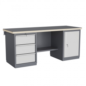 Тумбы и опоры верстаков выполнены из профилированной холоднокатаной стали и имеют сварную конструкцию. Возможна установка любых сочетаний тумб с различным количеством выдвижных ящиков, а также с дверцей и полками. Между тумбами и опорами возможна установка полки-стенки. На каждой ручке ящика и двери закреплен специальный алюминиевый профиль с отделением для установки маркировки. На тумбы с выдвижными ящиками установлена система антиопрокидывания, которая ограничивает выдвижение остальных ящиков тумбы, если один из ящиков выдвинут. Ящики снабжены специальными усиленными шариковыми направляющими. Тумбы снабжены центральной системой запирания.