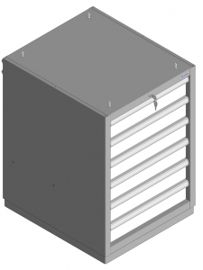 Тумба верстака GRAND с 6-ю выдвижными ящиками высотой 112мм, метал корпуса и выдвижных ящиков 1,0мм. метал подставки 2,0мм, внутренние размеры ящиков 112 (ВхШхГмм) 80х460х500, фактические размеры корпуса тумбы (ВхШхГмм): 825х580х660. Система антиопрокидывания, нагрузка на ящик 100кг.