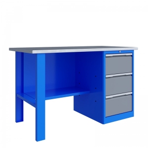Тумба верстака -сварная. Ящики в тумбе устанавливаются на шариковых телескопических направляющих полного выдвижения. В тумбе P3 установлено три больших ящика. Внутренние размеры больших ящиков (ВхШхГ), не более: 222 х 397 х 520 мм. Тумбы с ящиками снабжены общим центральным замком с поворотом ригеля 180 градусов и подпружиненной тягой. В комплекте два ключа.